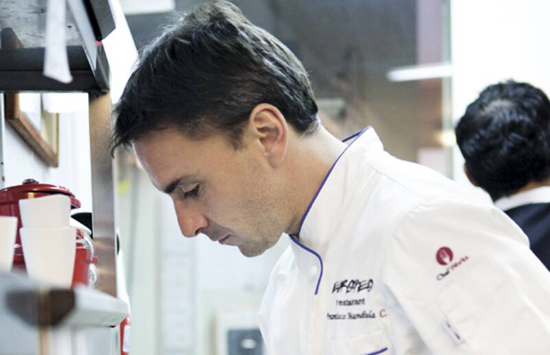 Hay un momento en la cocina de 5 x 5 metros del restorán Europeo que a Francisco Mandiola (38) le preocupa y lo obsesiona: el instante justo antes de que el plato cruce ese limbo que existe entre la cocina y comedor de su restorán. Con unas pinzas y precisión de cirujano, acomoda flores, mueve hierbas, quita y da volumen a los elementos de sus platos, hasta convertirlos en verdaderas obras de arte. Solo cuando está convencido de que logró darles el toque que tenía en mente, da el vamos para que el plato siga su rumbo. "Me obsesiona la presentación, en eso soy maniático. Siempre dibujo mis platos. Cuando partí, incluso me preocupaba más la estética que el sabor", confiesa.