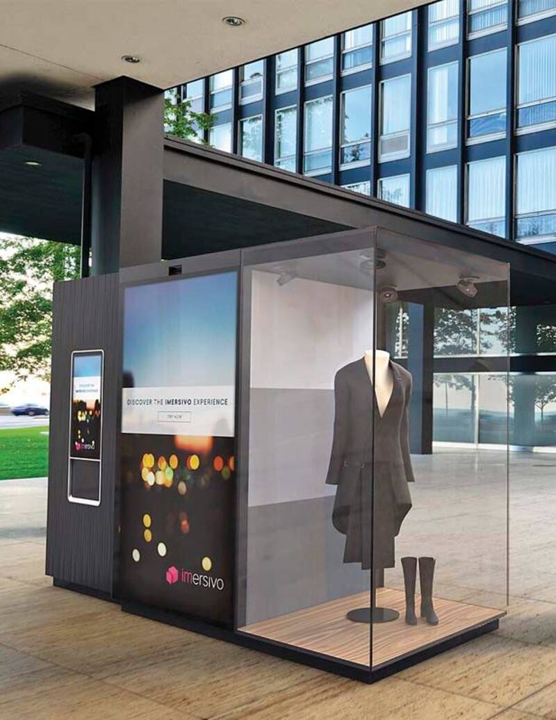 En un par de metros cuadrados, el Imersivo Cube ofrece una vitrina, productos para elegir interactuando con una pantalla, asesoría para combinar prendas y pago con celular.