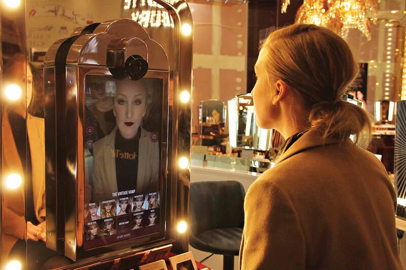 Dos experiencias piloto anticipan la nueva era del shopping. En 2016 la consultora inglesa de realidad aumentada Holition desarrolló el espejo Magic Mirror para la compañía de cosméticos británica Charlotte Tilbury. En la tienda del centro comercial Westfield London, se pueden visualizar estilos de maquillaje que se superponen digitalmente en la cara, facilitando la elección y compra. (https://holition.com/portfolio/charlotte-tilbury).
