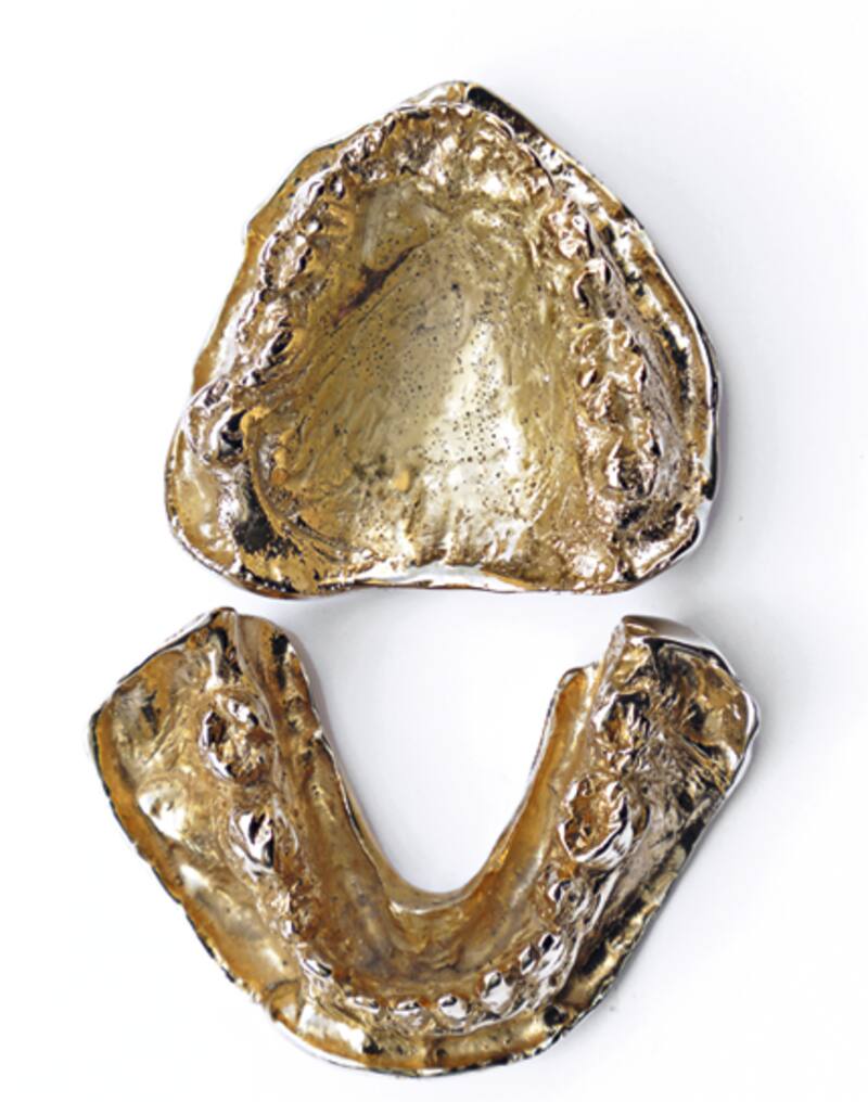Cordillera dentada, 2015. Modelo de bronce y oro, arcada maxilar y mandibular