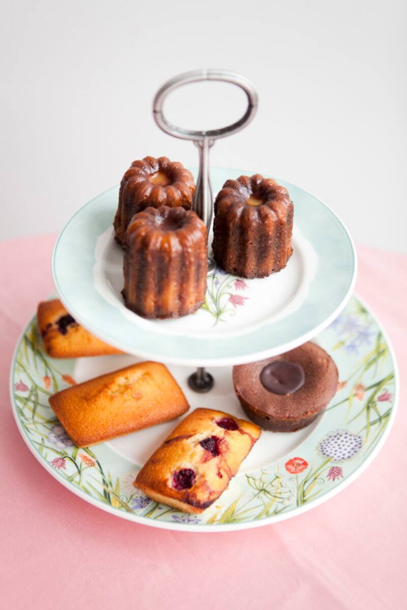 Una práctica tetera perfecta para el trabajo, vasos de doble vidrio para admirar los tonos de las infusiones y unos extraordinarios canelé.