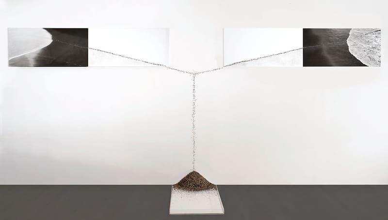El nombre de la exposición de Teresa Gazitúa es Tiempo de arena y el mensaje, dice la artista, es que las personas reflexionen sobre su propio tiempo. "Así como las piedras tienen un camino que recorrer por el cauce del río hasta llegar al mar para transformarse en arena, los humanos, en un tiempo determinado, nos transformaremos en polvo".[/caption]