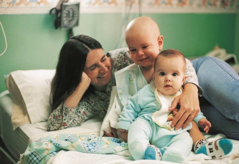 En esta foto se ve a Milagros de 5 meses junto a su mamá y Tomás, de 2 años. Están en la clínica, días después de realizado el transplante de médula de Milagros que le salvó la vida a su hermano Tomás.[/caption]