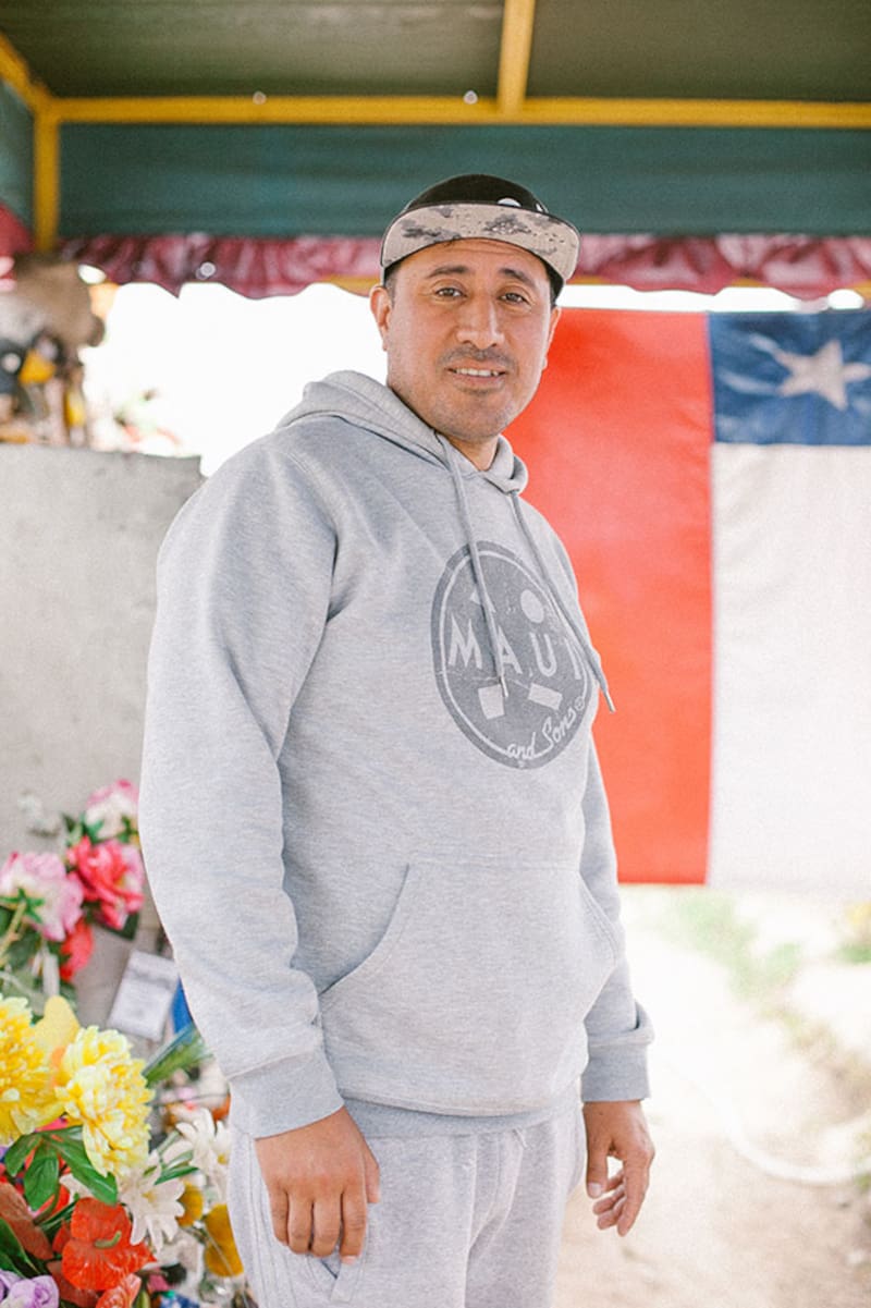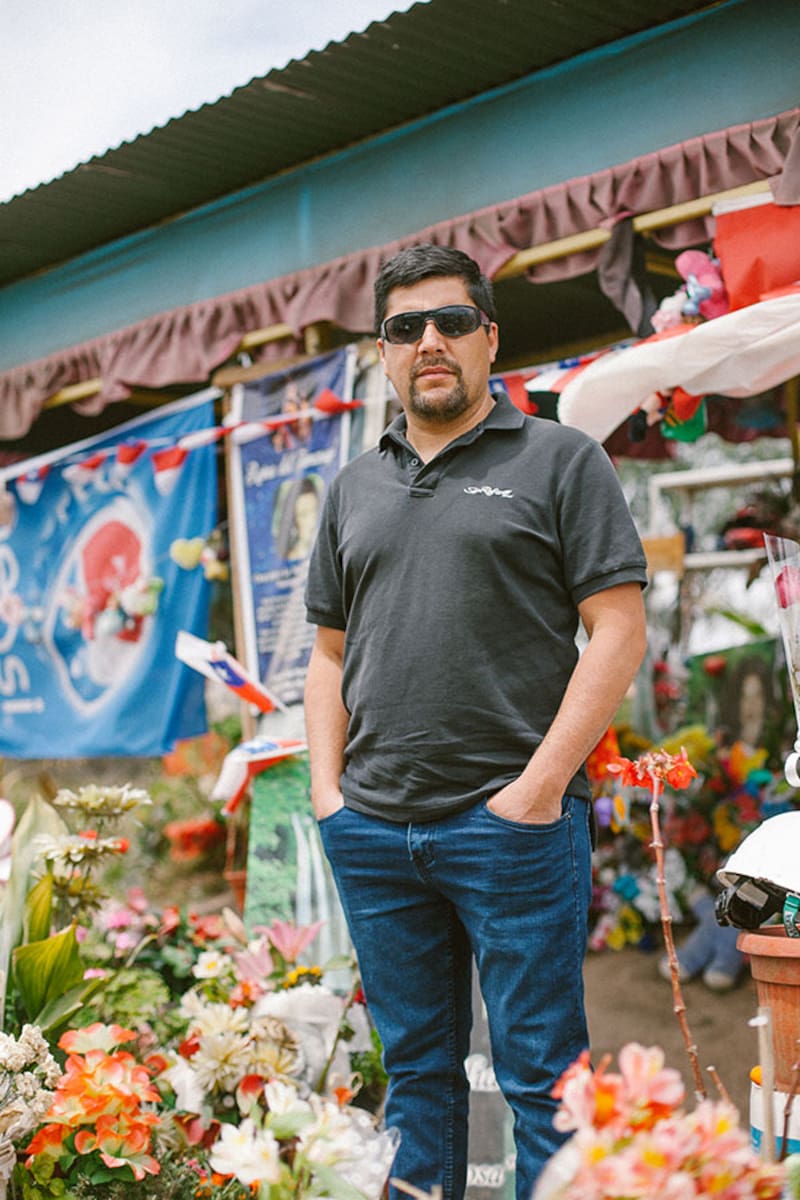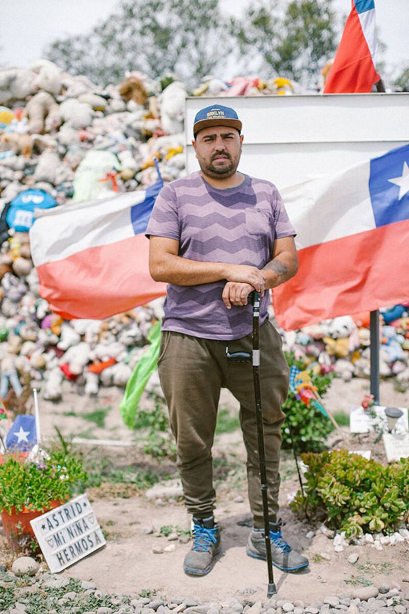 Es martes en la mañana y Adán Lagos (36) llega al lugar junto a su familia. Le cuesta caminar, por lo que usa una muleta que lo ayuda a sujetarse. "Yo le debo la vida a La niña hermosa, ella me salvó", cuenta. Hace ocho años chocó de frente en auto, después de una fiesta. Estuvo en coma por dos meses, y un año hospitalizado en la Posta Central de Santiago. La gran mayoría de sus huesos estaban quebrados. Su mamá se lo encomendó a Astrid, luego de escuchar que concedía favores. Adán se detiene a agradecerle cada vez que pasa por ahí, y le deja peluches. Ya perdió la cuenta de todos los que le ha regalado, porque trata de saludarla todos los días. "Sé que es muy milagrosa, a mí nadie me quita eso de la cabeza. Era una persona muy especial y Dios le dio la virtud de poder ayudar a la gente. Creo totalmente en ella".