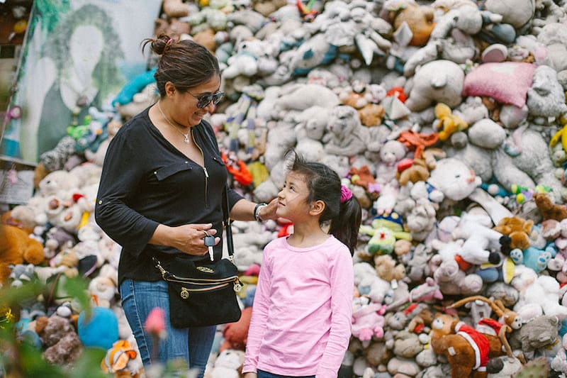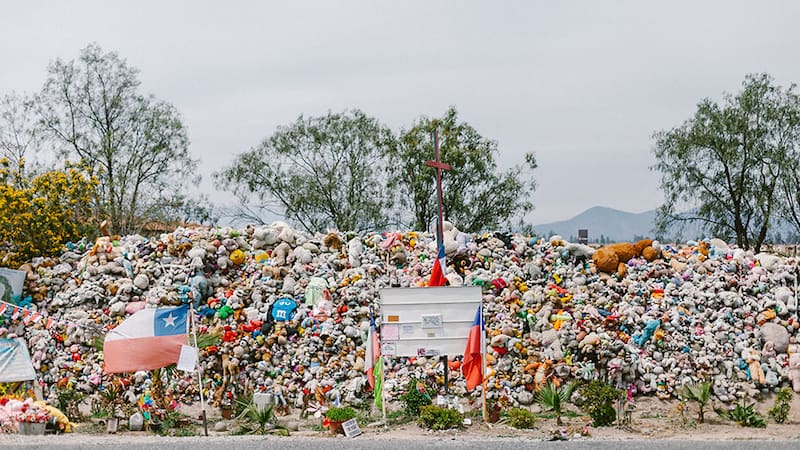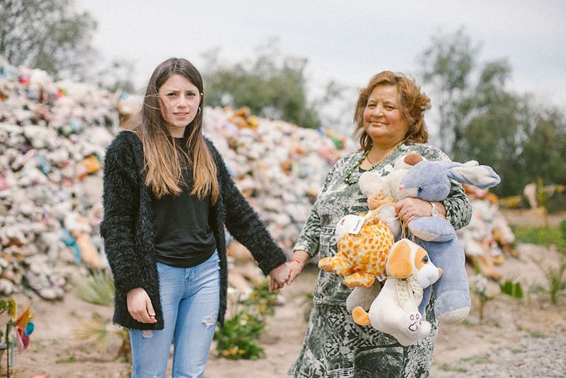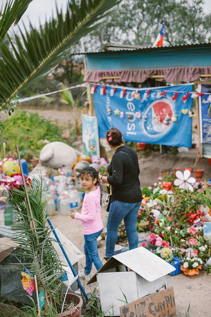 Susana Azócar (63) se emociona al verla. Desde que se construyó el santuario se detiene una vez al mes a saludar a Astrid. "Apenas pongo un pie en el lugar, se me caen las lágrimas. Es algo muy raro, totalmente automático. Me emociona mucho su historia. Yo soy de Peñaflor también, y me acuerdo perfecto el día que murió. Nunca la conocí, pero había muchos rumores sobre el atropello en el barrio. Allá todos sentimos una cercanía especial con ella. Siempre me ayuda, le he pedido mucho por mi hija, que estuvo metida en unos problemas, y nunca me ha fallado. Creo que traerle peluches es un gesto que podemos tener con ella. Le encantaban, y ahora tiene millones".