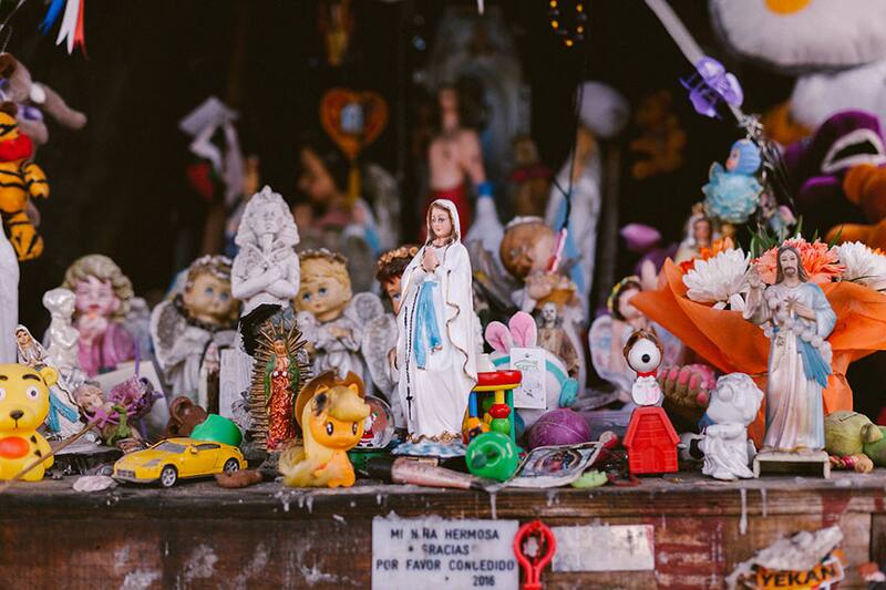 La gran mayoría de las personas que visita la animita asegura sentir aquí una energía diferente. Pese a que el lugar acumula un montón de objetos, está impecable y es muy difícil encontrar basura tirada en el suelo. Cada ofrenda está perfectamente puesta en su lugar. Karol Vilches (37) es comerciante y se dedica a la venta de ropa americana. Le reza todos los días, sin excepción, para que le vaya bien en el negocio. La mayoría de las veces lo hace desde su casa, pero hoy decidió pasar a verla junto a su hija. "Es a la única persona que le pido cosas porque doy fe de que las cumple. Hace unos días le prometí que iba a venir, ya que me ha ayudado un montón con las ventas y la salud de mis niñas. Juro que desde que la conocí, todo ha estado mejor. Como estoy apurada la pasé a saludar, pero no alcancé a traerle un peluche. Ahora estoy en deuda porque como ella nos cumple, nuestro deber es hacerlo con ella".