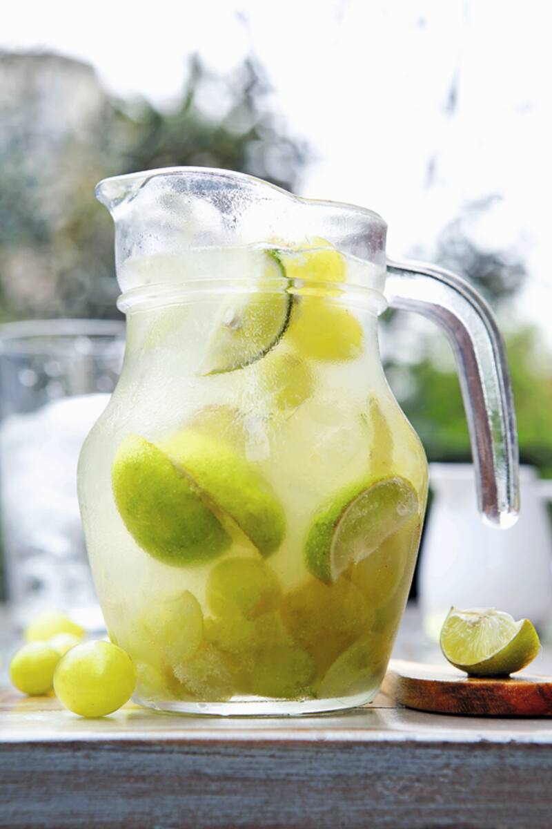 1. En un vaso alto colocar las uvas y limones, machacar mezclando las frutas luego agregar el syrup de sauvignon blanc, llenar de hielo y luego verter la bebida blanca hasta llenar el vaso.