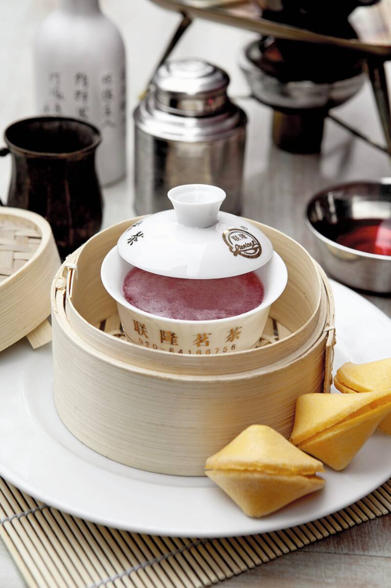 1. En una coctelera o en licuadora colocar todos los ingredientes y licuar o mezclar hasta integrar. Servir en una vaso corto decorado con rodajas de naranjas deshidratadas o la bolsita del té.