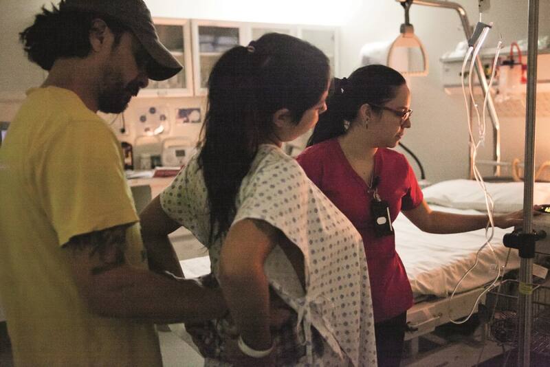 Son cerca de las 13:00 horas de un jueves de marzo y una mujer está en trabajo de parto en la maternidad del Hospital de La Florida Eloísa Díaz Insunza. Es boliviana, tiene 20 años y este es su primer hijo. Se encuentra en una de las cuatro Salas de Atención del Parto Integral, una pieza de 40 m² con una cama plegable y jacuzzi, que está iluminada apenas por una lámpara de sal que aporta una sensación de intimidad.