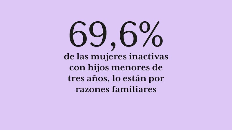 De acuerdo con el último informe laboral del Zoom de Género, elaborado por el Observatorio del Contexto Económico (OCEC) de la Universidad Diego Portales y Chile Mujeres (2023), el 65,6% de las mujeres que se mantienen inactivas con niños/as menores de cinco años en sus hogares es debido a razones familiares permanentes, lo que dista bastante de la cifra de los hombres que se mantienen inactivos del mismo segmento, los que sólo en un escaso 6,1% lo hacen por las mismas razones.
