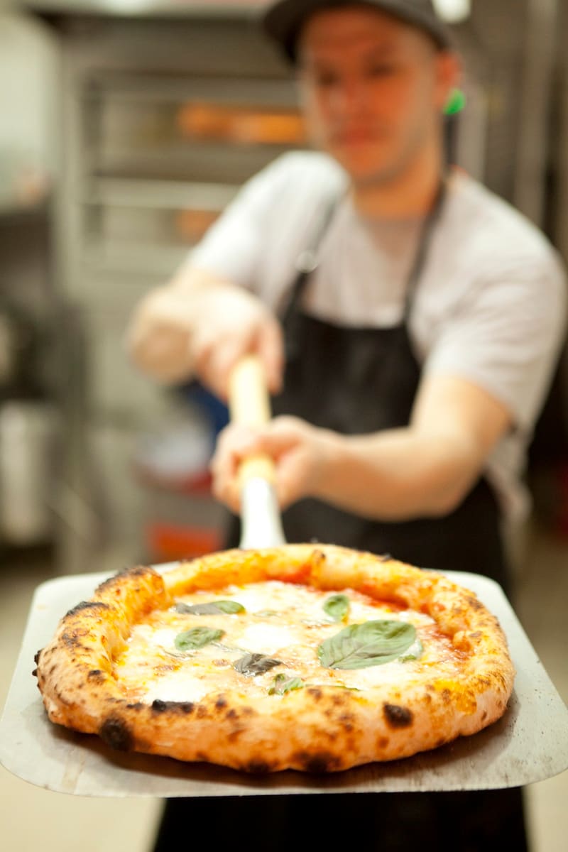 Harina de trigo que importan directamente de Italia, una base de masa madre que se deja fermentar por 48 horas en frío, tomates italianos San Marzano, que tienen Denominación de Origen, y Mozzarella Fior di Latte, que les elabora especialmente una familia que ordeña a sus propios animales, son la base de sus 12 variedades de pizzas.