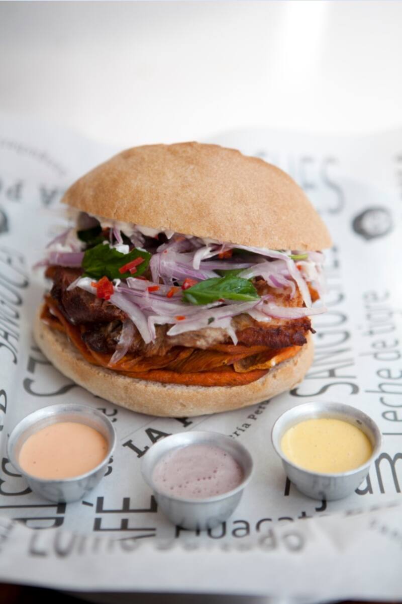 Detrás de una barra a la vista, en un nuevo local ubicado a pasos del Metro Los Leones, cinco cocineros limeños les dan sabor y sazón a clásicas recetas peruanas como lomo saltado, pescado acebichado y chicharrón de cerdo, las que montan con talento dentro de distintos panes.