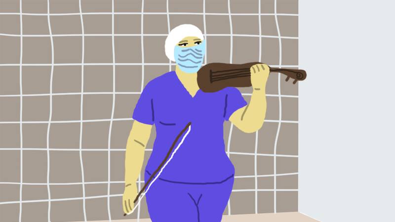 Un día, hace un poco más de un mes, llevé mi violín al hospital y mi jefe me propuso que tocara en Urgencias. Desde ahí que no he parado; todos los martes y jueves, después de mi turno, voy y toco para los pacientes y para mis colegas. Mi repertorio incluye desde himnos cristianos a canciones de Miguel Bosé.