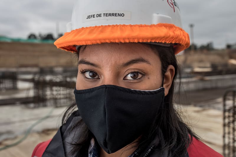 Katherine Galástica tiene 26 años, es arquitecta y oriunda de Panamá. Llegó hace apenas un año y medio a Chile. Es una de las jefas de terreno y está a cargo del primer equipo completamente femenino de la obra.
