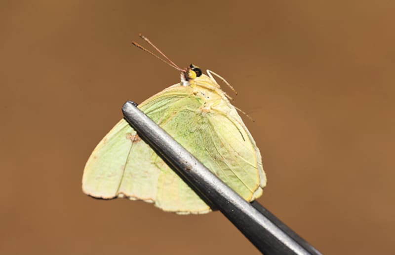 De pronto una mariposa de un color amarillo flúor pasa volando veloz. Es Phoebis sennae macho. Alfredo Ugarte corre y agita en el aire una red igual que las de los dibujos animados, pero la Phoebis logra esquivarlo. Esta mariposa, que sólo vive en Chile, recorre 100 kilómetros o más en un día.