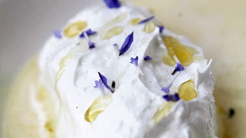 La leche nevada se puede decorar con figuras de caramelo, almendras picadas y tostadas, praliné, flores de lavanda frescas o zeste de limón.