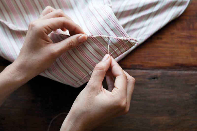 3. Coser a 4 cm de la esquina inferior para hacer la base del bolso.