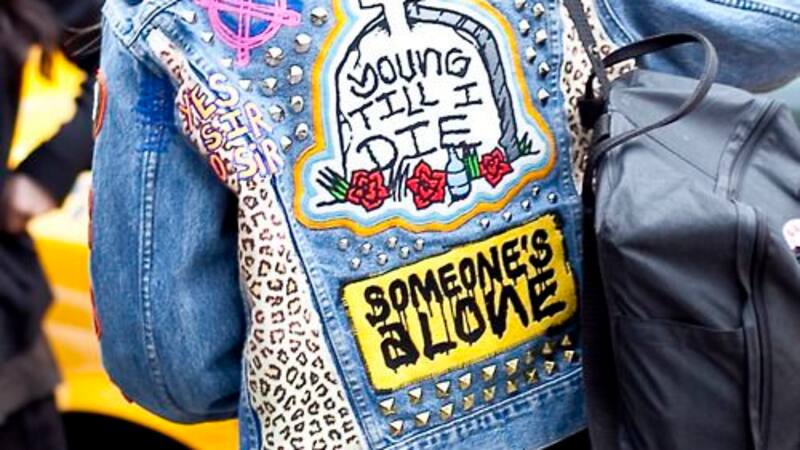 La chaqueta tipo boyfriend, ancha y con largo hasta la mitad del muslo, está reinando hoy en el street style, ya que completa un look simple como un vestido o una polera básica y pantalones, dándole un toque grunge. También se está usando rasgada y con detalles personalizados, como bordados, parches o varios broches.