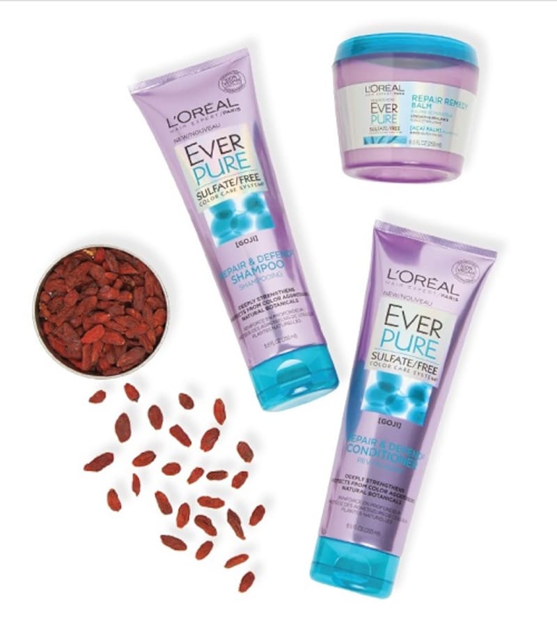 Busco productos que reconstruyan el pelo y que regeneren la fibra capilar. EverPure de L'Oréal Paris está especialmente formulado para pelo teñido, y gracias al