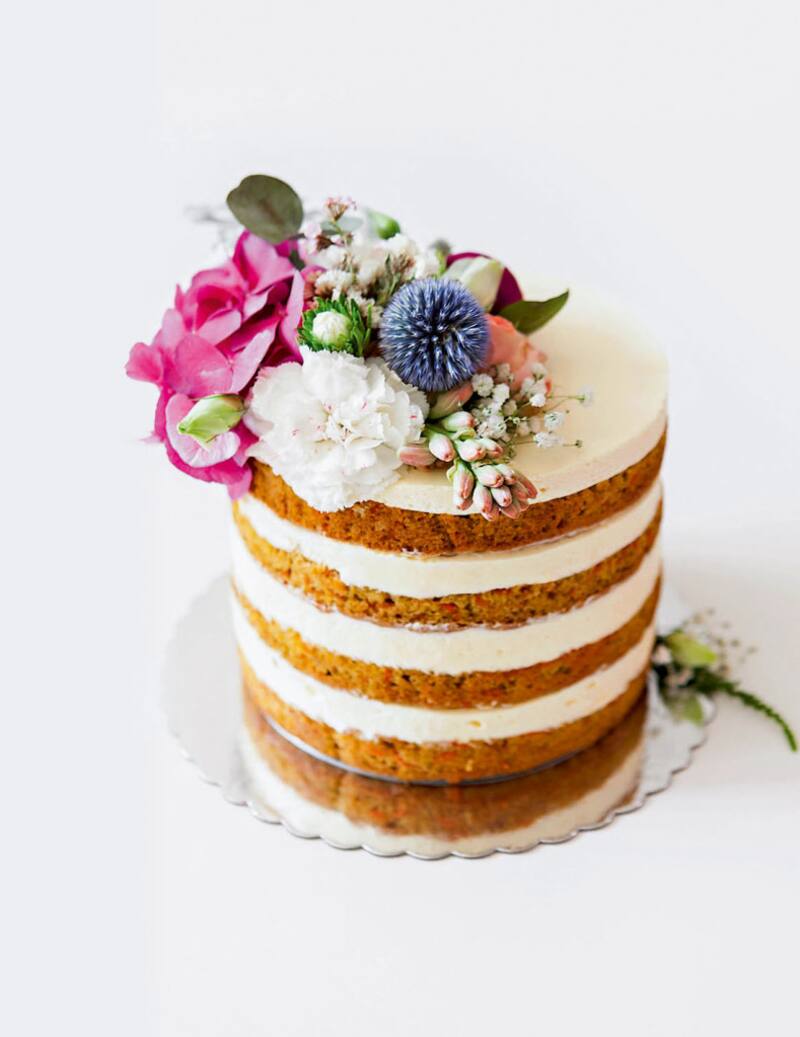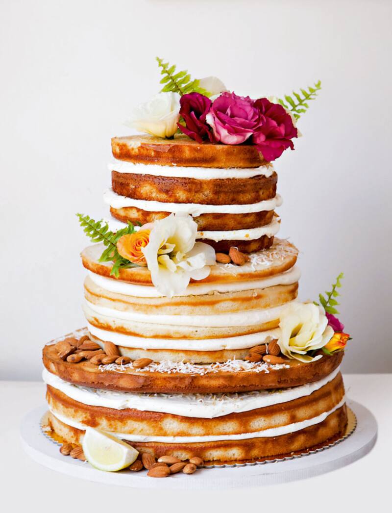 Las naked cakes –que suelen decorarse con frutas y flores– reemplazan a las pretenciosas coberturas de fondant por un bizcocho con su relleno a la vista y están de moda en matrimonios rústicos. Aquí, cuatro datos recomendados.