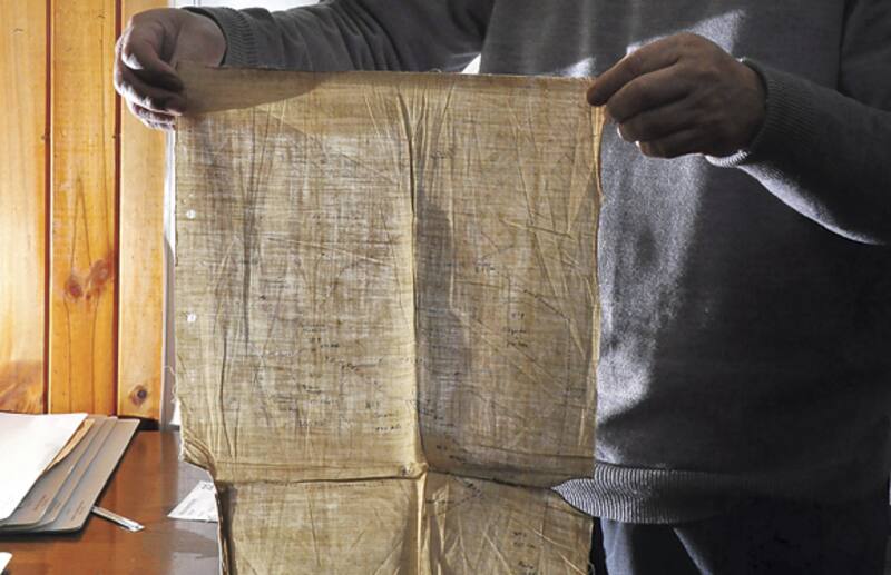 La archivera María Eugenia Queupemil –abrigada con parka–abre la bóveda donde están las 2.918 carpetas. Parece el interior de una pirámide cerrada por siglos. Me enseña un viejo plano dibujado sobre género de 1884 que asigna las tierras de la combativa comunidad de Temucuicui en la comuna de Ercilla. El título de merced número 3.