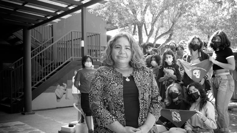 El 8M en el Andino Antuquelén jamás es un día como cualquier otro. Por algo fue, en 2018, el primer establecimiento escolar en declararse antipatriarcal y poner este concepto como uno de los ejes de su programa educativo. En años anteriores, las chicas y disidencias de 1° a 4° medio se instalaban en la plaza de la comuna -San José de Maipo- para hacer talleres sobre acoso callejero. “El 8M es un día para recuperar nuestra historia, reconocer nuestras luchas, recordar a las mujeres inspiradoras que han sido invisibilizadas pero, por sobre todo, es un día para identificar aquellas cuestiones que −a pesar de nuestra resistencia− se mantienen, tanto en la escuela como en la sociedad. Identificar aquellas prácticas y discursos machistas, misóginos y patriarcales que de alguna manera todas y todos tenemos, porque somos hijas e hijos de este sistema”, dice Lorella Lopresti, profesora de historia y geografía, feminista y directora desde 2002 de este colegio, del cual además es cofundadora.