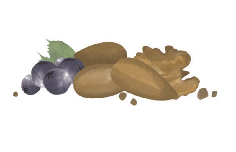 Un puñado de frutos secos, arándanos y un té verde, son una buena opción de media tarde para mantenernos vitales y felices hasta el momento de la cena.