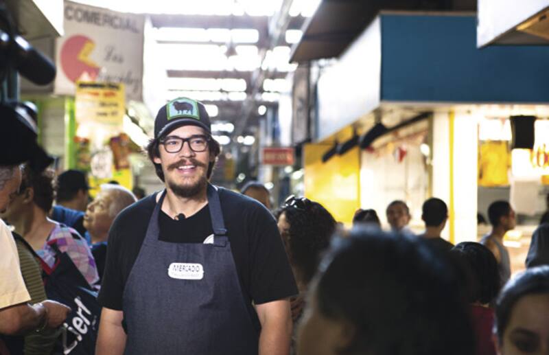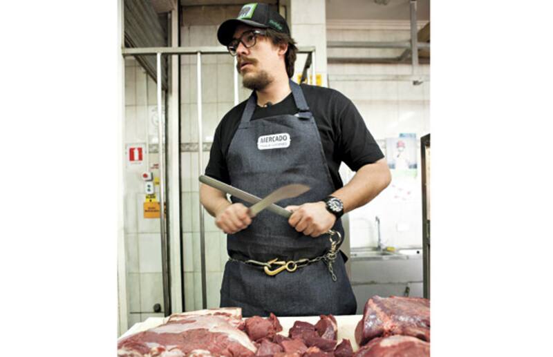 Renzo Garibaldi conoció La Vega Central durante su visita a Santiago. En el tradicional mercado capitalino compró los productos para su curso y cortó él mismo los trozos de carne.