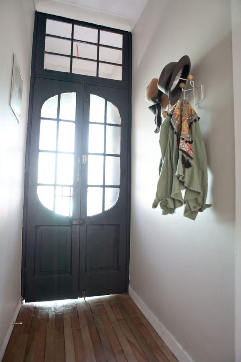 Algunos muebles fueron comprados en el Parque de Los Reyes, otros en Franklin, hasta en la feria de las pulgas de Valparaíso. La alfombra del living fue herencia del papá de Valentina. Un detalle muy lindo es el ventanal que da al patio, que si bien es totalmente nuevo, mantiene la estética original hecha con empalillados sobre el vidrio.