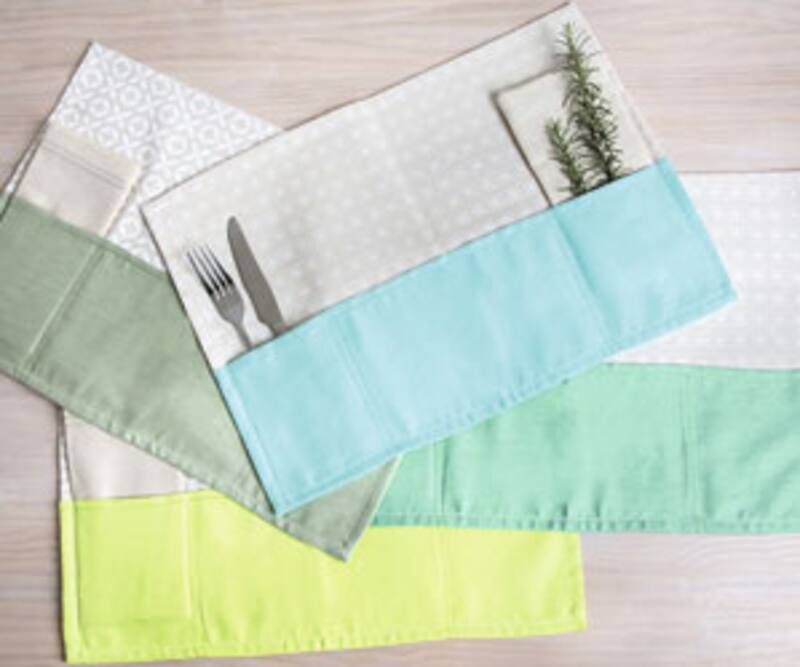De tela impermeabilizada con bolsillos en lino para los cubiertos, de La Mona Mesa. $ 32.500 el set de 4 (incluye servilletas). www.lamonamesa.cl. Fono 22891 1907.