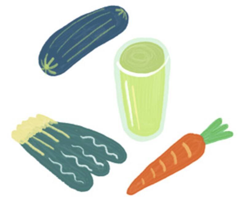 1. Los jugos de frutas y verduras que preparo a diario en una licuadora y tomo al desayuno y en la tarde, tipo 18 horas. Mi favorito es una combinación de acelga, manzana verde, zanahoria, pepino y cilantro.