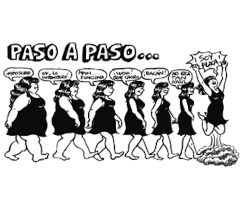 Sus cómics más recientes comenzaron a representar las cosas que están dentro del cuerpo: órganos, neuronas, hormonas o células, que desfilan en sus escenas como personajes sacados de una imaginación desbordada. En el nuevo libro, pronto a lanzarse, Maliki le da rienda suelta a su gusto por crear este tipo de imágenes. Realizado en conjunto con la sicóloga Karolina Lamas, Quiero ser flaca y feliz (ed Planeta) es una publicación de autoayuda donde se explican los fundamentos teóricos y la práctica de tratamiento que utiliza el método Goce (www.grupogoce.cl). Se trata de una terapia grupal destinada a personas con sobrepeso. Maliki se metió a esa terapia y logró bajar 25 kilos (pesaba 90) pero, además, se interesó seriamente en los procesos emocionales, neurológicos y biológicos implicados. "Finalmente entendí por qué era gorda y asumí la responsabilidad de cambiar. Ni las dietas ni las cirugías son la solución: con esta terapia me quedó claro que lo único que funciona a largo plazo es superar los sentimientos de carencia afectiva que, incluso, producen respuestas biológicas, disparando la ansiedad de comer compulsivamente para llenar un vacío emocional", dice la ilustradora.