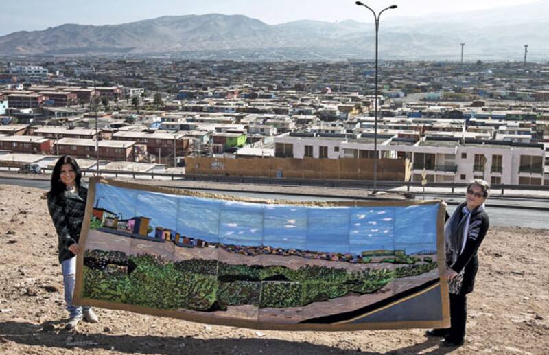 Alto Hospicio carga con dos incómodos estigmas: es una de las diez comunas con peor calidad de vida en Chile, según el Indicador de Calidad de Vida Urbana de la Universidad Católica, y fue escenario de los catorce homicidios contra adolescentes cometidos por el llamado "psicópata de Alto Hospicio", a fines de los 90. Con esa carga se encontró en 2004 la artista ariqueña Janet Figueroa (64, en la foto, a la derecha), cuando llegó a vivir ahí. Quería desarrollar un proyecto de alfabetización laboral de mujeres y para levantar información empezó a hacer un puerta a puerta. "Me di cuenta de que son las mujeres las jefas de hogar y que estaba todo por hacerse", recuerda. Junto a la arquitecta, cantautora y poeta iquiqueña Alexandra Checura (42) pusieron en marcha el proyecto Bordadoras de Alto Hospicio, que reunió a 27 mujeres de la comuna. "Decirles: 'borden el lugar donde viven', implicó que se preguntaran cómo habían llegado a vivir ahí. Surgieron escenas de la vida cotidiana: mujeres cocinando en las tomas, las casas construidas con palet y, al frente, los niños jugando. Todo bordado con colores muy vivos", comenta Janet Figueroa. Por este proyecto, Janet ganó en 2014 el premio Mujer Impacta, que reconoce a emprendedoras sociales. Y hoy, aunque las bordadoras ya no se reúnen –según ambas gestoras, por falta de apoyo municipal–, ellas mantienen el contacto con las mujeres, que siguen bordando.