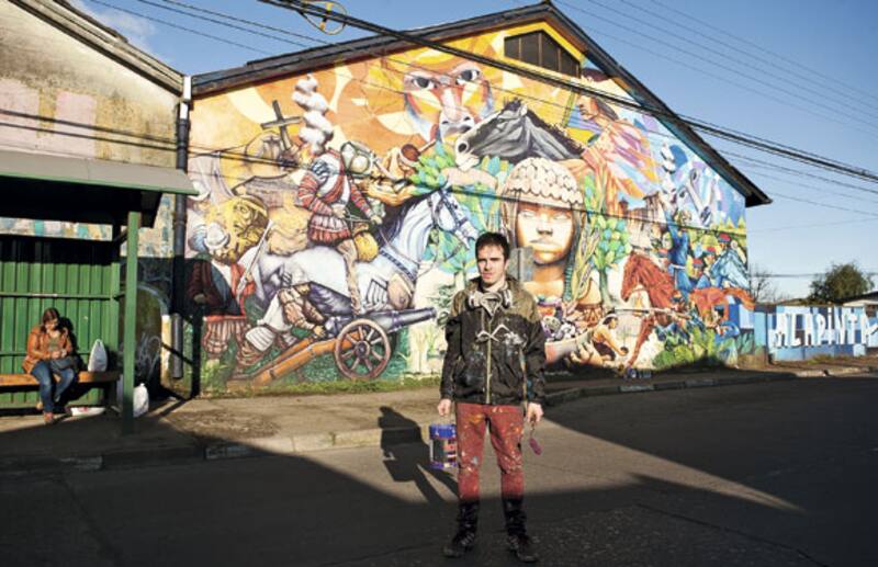 Sus coloridos murales hablan sobre la identidad mapuche, del trabajo en el campo, de paisajes sureños. Gabriel Veloso (en la foto), Claudio Maher, Aner Urra y Claudio Cabrera, los miembros del colectivo Alapinta, se conocieron cuando estudiaban Diseño Gráfico en el Inacap de Temuco y hoy se definen como 'graffomuralistas'", ya que en la mayoría de sus trabajos combinan el spray con la pintura. Su fama y calidad artística han sobrepasado las fronteras de la región que los inspira: en 2013 expusieron sus trabajos en París gracias a una invitación de Inti Castro, el grafitero porteño que hoy es referente del street art mundial. Al año siguiente volvieron a viajar, esta vez a Canadá, para participar en el Festival Kultrún, organizado por la corporación Neruda Arts y que reúne artistas de distintas disciplinas y orígenes como una fiesta de diversidad cultural.