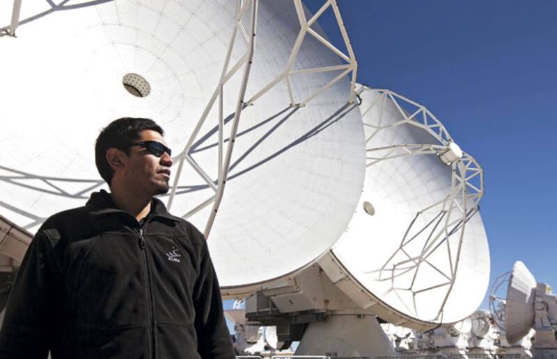 Cerca del 40% de la capacidad mundial de observación astronómica está concentrada en suelo chileno y se estima que a 2030 la cifra llegará al 70%, transformándose en el mayor laboratorio natural del mundo. Que eso sea posible se debe, en gran parte, a Alma, el observatorio astronómico internacional que funciona desde 2013 a 40 km de San Pedro de Atacama. Un proyecto que fue financiado por el Observatorio Europeo Austral (ESO), por la Fundación Nacional de Ciencias de Estados Unidos (NSF), por el Consejo Nacional de Investigación de Canadá (NRC) y por el Instituto Nacional de Ciencias Naturales de Japón en cooperación con la Academia Sinica (AS) en Taiwán. Los ojos de Alma, que permiten ver qué hay detrás de grandes nubes de polvo cósmico y gas, donde antes nadie había podido ver, son 66 antenas de entre 7 y 12 metros de diámetro que están repartidas en el llano de Chajnantor –ubicado a 5 mil metros de altura– y que, unidas entre sí, tienen el poder de una antena de 16 kilómetros de diámetro. A ese lugar solo accede un selecto grupo de personas. Entre ellas, el ingeniero civil eléctrico Cristóbal Jara, uno de los seis supervisores que maneja las llaves de las antenas y es responsable de que funcionen como reloj. "Acá las observaciones se hacen todas las noches del año a pedido de equipos de astrónomos de distintos rincones del mundo, que para conseguir un cupo en Alma presentan proyectos con muchos meses de anticipación", explica.