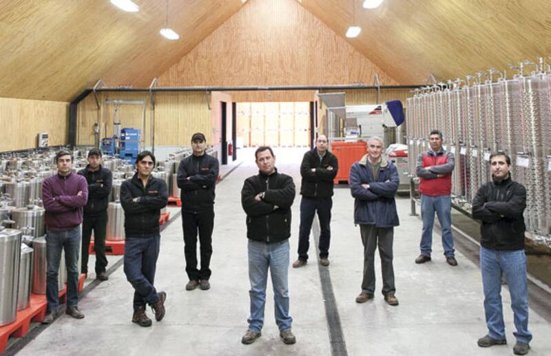 La mayor producción nacional de vinos en 2015, con más de 5 millones de litros, la concentra la Región del Maule, que tiene 40% de sus suelos plantados con viñedos. Por eso no es casual que el centro de investigación vitivinícola más grande en Latinoamérica se encuentre ahí, en Pencahue. Inaugurado a principios de este año, el Centro de Investigación e Innovación (CII) de la Viña Concha y Toro, cuenta con laboratorio y una bodega experimental donde hacen investigaciones genéticas y estudios de vinificación para mejorar la calidad del vino chileno. Los 15 especialistas que trabajan aquí –entre los que hay bioquímicos y agrónomos, liderados por el enólogo Gerard Casaubon (de polar morado en la foto)– hoy están enfocados en la prevención de enfermedades de las viñas, el desarrollo de clones de cepas para mejorar su calidad y el fortalecimiento de la variedad uva país, casi extinta. Para ello tienen una alianza productiva con 18 pequeños productores de San Javier y Cauquenes: ellos entregan la materia prima y el centro ensaya mejoras. Temblado Abarza y Álvaro Prieto (en la foto de parka azul y roja), son dos de esos agricultores. "Nos han enseñado nuevas técnicas de manejo; gracias a sus asesorías pude salvar 1,5 hectáreas de viñas que se me habían enfermado", cuenta Prieto.