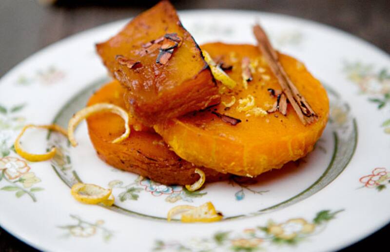 3. En platos individuales colocar las rodajas de zapallo y servir decorado con palitos de canela.