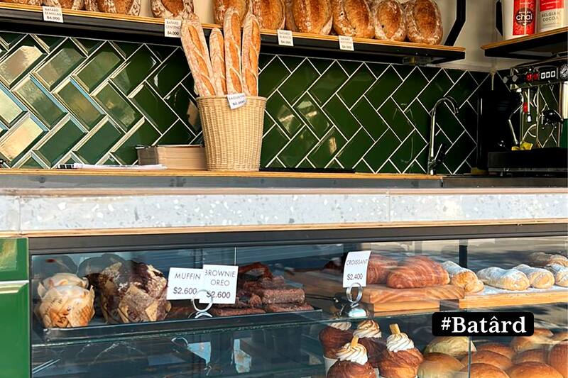 En Batârd se dedican a la elaboración de masas artesanales. Además de ofrecer pan de masa madre, brioche, pizzas y sándwiches, también tienen bollería con productos que buscan revivir sabores del pasado: croissants rellenos con turrón de vino o leche nevada y postres como crumble de frutos rojos y pie de manzana.