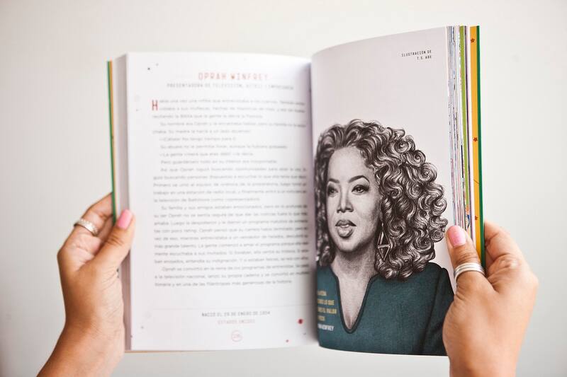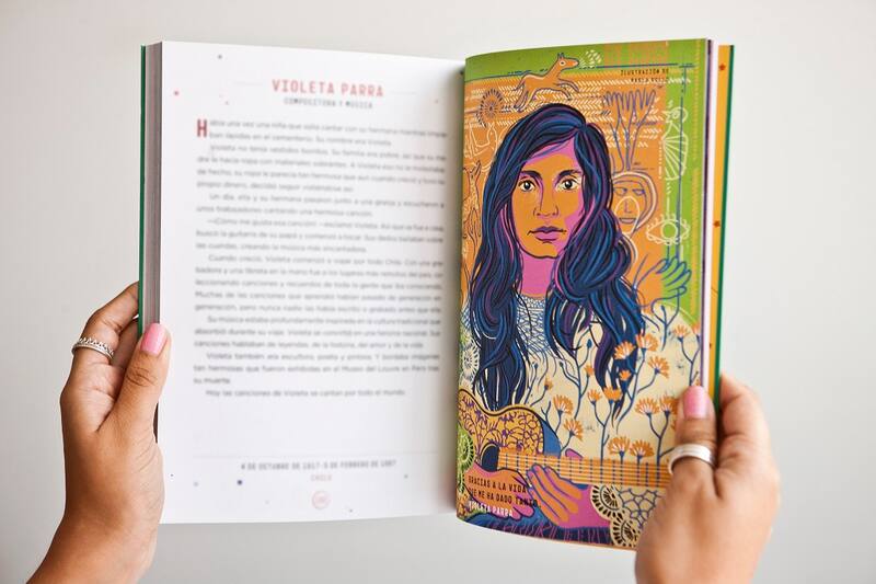 El libro escrito por las italianas Elena Favilli y Francesca Cavallo reúne las historias de 100 destacadas mujeres de todo el mundo, de distintas ocupaciones y épocas: la autora de Harry Potter, J.K. Rowling; estrellas del espectáculo, como la actriz belga Audrey Hepburn, y las norteamericanas Oprah Winfrey y Beyoncé; la cantante cubana Celia Cruz y la activista guatemalteca Rigoberta Menchú. Y Chile también está presente, representado por Violeta Parra. Los cuentos, además, incluyen una ilustración de cada una de las mujeres, hechas por 50 artistas de distintas partes del mundo.