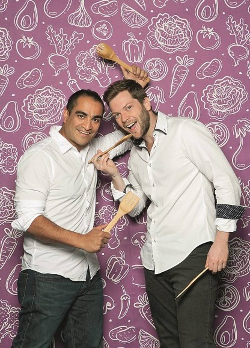 Pipe Sánchez, conductor de TVN y crítico gastronómico en 365sanguchez.com, junto al chef de Sukalde itinerante, Matías Palomo.