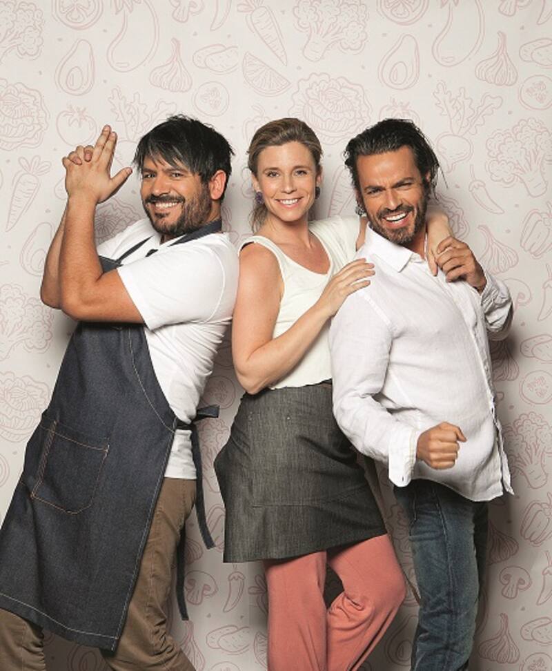 Connie Achurra, cocinera y conductora de Mi lado dulce, junto a su padre y hermano, los actores Patricio e Ignacio Achurra.