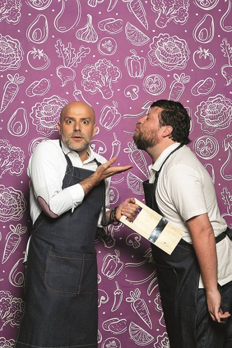Juan Manuel Pena, chef del restoranes Peumayén y Cabildo itinerante, junto al actor Paulo Brunetti.