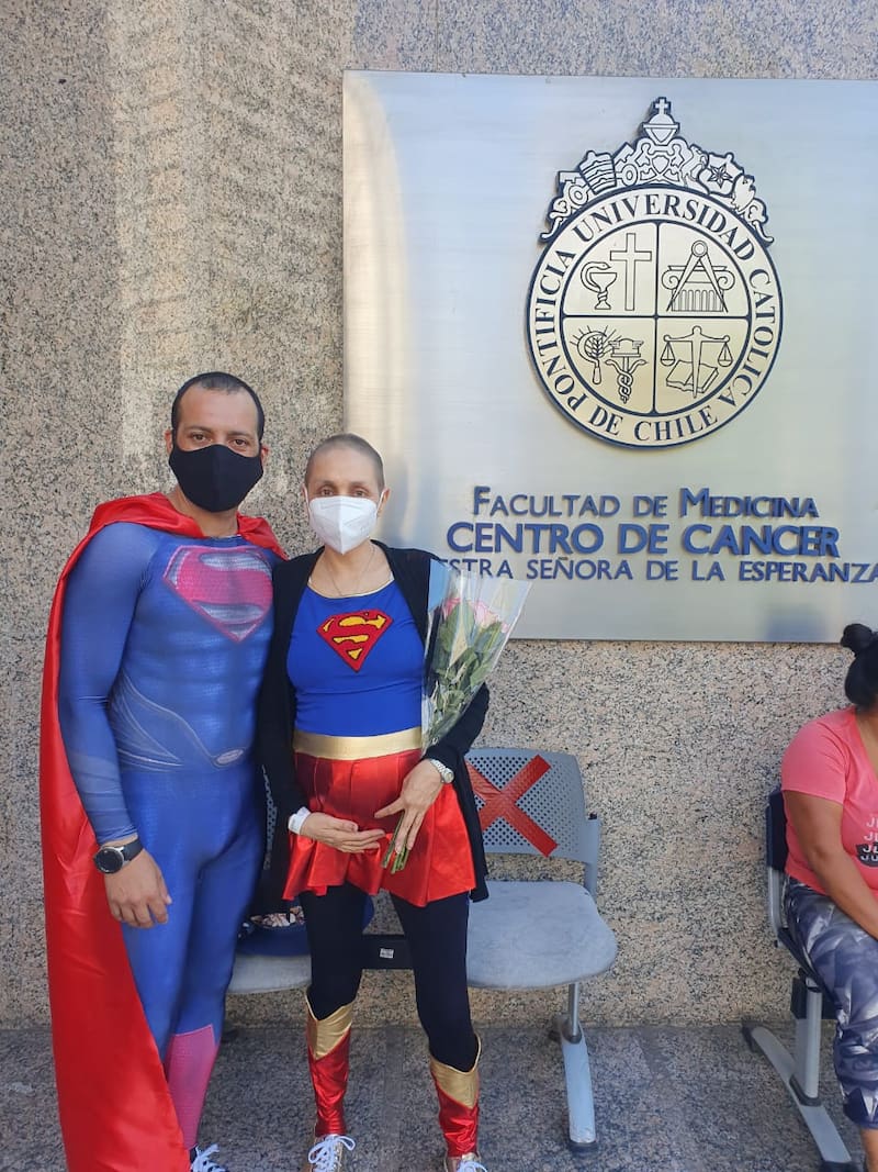 “Se me vino el mundo encima porque no es una enfermedad fácil. Pero luego dije, ‘no me puedo echar a morir’. Me decía ‘no quiero que la gente me vea como víctima, sino que como alguien que está luchando’. Si mi familia me veía bien, ellos me iban a subir más el ánimo al no mirarme con lástima. Es por eso que decidí ir a todas mis radioterapias disfrazada de la Mujer Maravilla. El equipo médico es fundamental. Cómo te tratan, cómo son contigo es importantísimo. Yo iba al Centro del Cáncer UC CHRISTUS y me sentía bien, tranquila. La gente estaba muy preocupada y me ayudaron cuando yo estaba agotada”, recuerda Lorena.