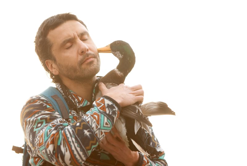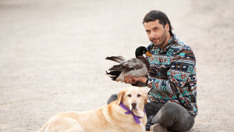 Iván Jiménez es un artesano de Cahuil que vive con un pato y una perra. Este clan atípico se dedica a limpiar playas, lagunas y humedales, inspirando a otros a cuidar el medioambiente con su propia historia. "Tengo 40 años y nunca había visto un vínculo tan cercano entre dos especies diferentes. Han sido mis mayores maestros en la vida", dice.