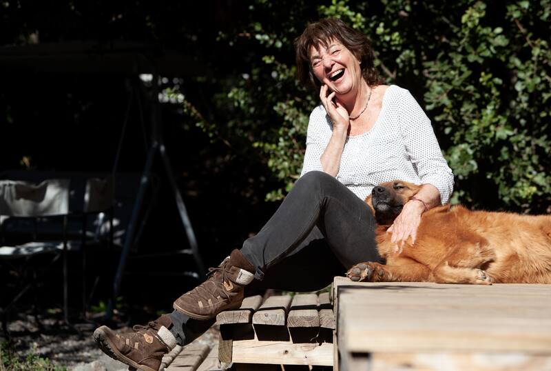 La acompaña a todas partes y cuando sale en auto y no puede llevarlo, cuenta que se tiene que afirmar de la reja cuando regresa porque Dante se le tira encima feliz de verla. “Es mi compañero de vida, vivimos los dos acá en la montaña. De hecho, voy a clases de gimnasia los martes y jueves y él va conmigo, entra a la clase, y todas mis amigas lo adoran”.