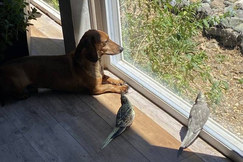 El Boldo es un perro salchicha que llegó a la familia de Javiera Molina hace varios años, convirtiéndose en uno más. Hace un año, la familia creció con la llegada de dos cotorras Ninfa. Contra todo pronóstico, los tres conviven estupendamente y se han convertido en inseparables compañeros que hasta se acuestan en la ventana juntos para tomar sol.