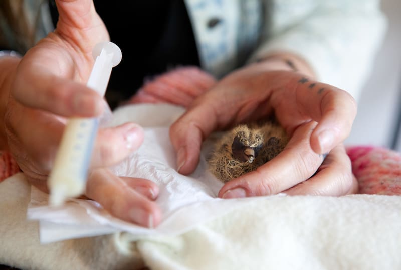 Hoy en su casa conviven una tortuga, dos cacatúas ninfa, tres gatos, tres perros y, a menudo, algún animal que rescata temporalmente para luego dar en adopción o liberar, como una cría de tórtola que cayó de una palmera en su condominio y que Claudia alimenta con una jeringa. “Es la primera vez que tengo una tan pequeñita. Lo que más espero es que se salve para poder liberarla nuevamente”, dice.