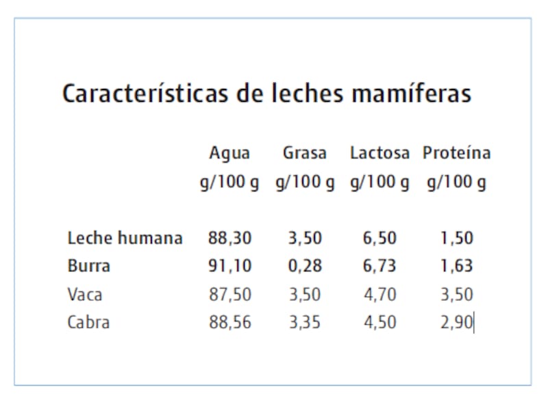 Lo curioso es que la burra, especie herbívora de crecimiento rápido, produzca una leche tan parecida a la de un omnívoro de crecimiento muy lento: el humano. "Una teoría es que tiene que ver con que el burro vive en climas donde la dieta es muy mala. Si tú lo pones en un sitio con pasto, va a preferir comer las ramitas del lado. Necesita mucha fibra, pastos pobres. Está adaptado evolutivamente a eso. Su sistema digestivo le permite digerir alimentos que otros herbívoros no digieren bien. Y dentro de este mecanismo adaptativo, su leche es muy pobre en proteína, para que a su vez la cría se adapte (o acostumbre) a este ambiente de malnutrición", explica el gastroenterólogo. Así, por mecanismos evolutivos completamente distintos, se llega a dos leches que son muy similares.