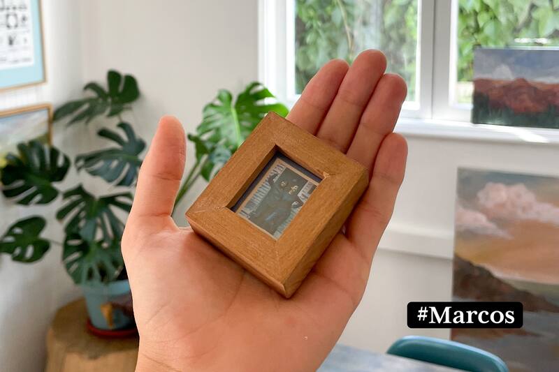 Experimentar distintas formas en el oficio de la enmarcación. Ese fue el objetivo bajo el cual nació, a fines de 2021, el taller Socias Lab, conformado por tres arquitectas y una artista visual. “Queríamos salir del marco tradicional y explorar con la plasticidad de la madera. Así, un día, a modo de broma, con retazos de las molduras que se nos iban acumulando, cortamos la madera más pequeña que permitiera la máquina (2 cm aprox)”, explica Valentina Soto, una de las fundadoras de Socias. Cuando pegaron las partes, fue tanta la ternura que les produjo, que decidieron hacer el resto de las capas del marco —con vidrio, paspartú y foam board— y grabar el proceso. Así nació el marco bebé ($17.000) y también el video más viral de la cuenta de Instagram de @sociaslab, con más de 28 mil reproducciones. Hoy es un producto que venden para enmarcar mini fotografías u objetos.