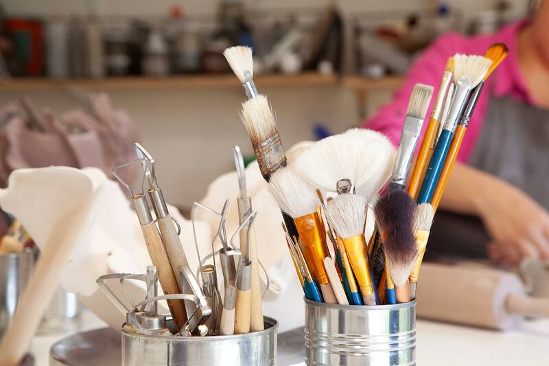En Espacio Azul, ubicado en Vitacura, hay una sala especialmente dedicada al esmaltado de piezas con una gran variedad de opciones de colores y formas de esmaltar: por chorreo, inmersión, pincel y más. También tienen a disposición una gran variedad de óxidos, engobes y pigmentos.